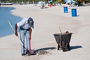 "Naše" pláž - překvapivě pravidelně uklízená a moře - můžete jít pěšky po pás ve vodě několik stovek metrů...pak přeplavete tu tmavší hlubší část - asi tak 30m, a zase se můžete brodit až k mangrovům.