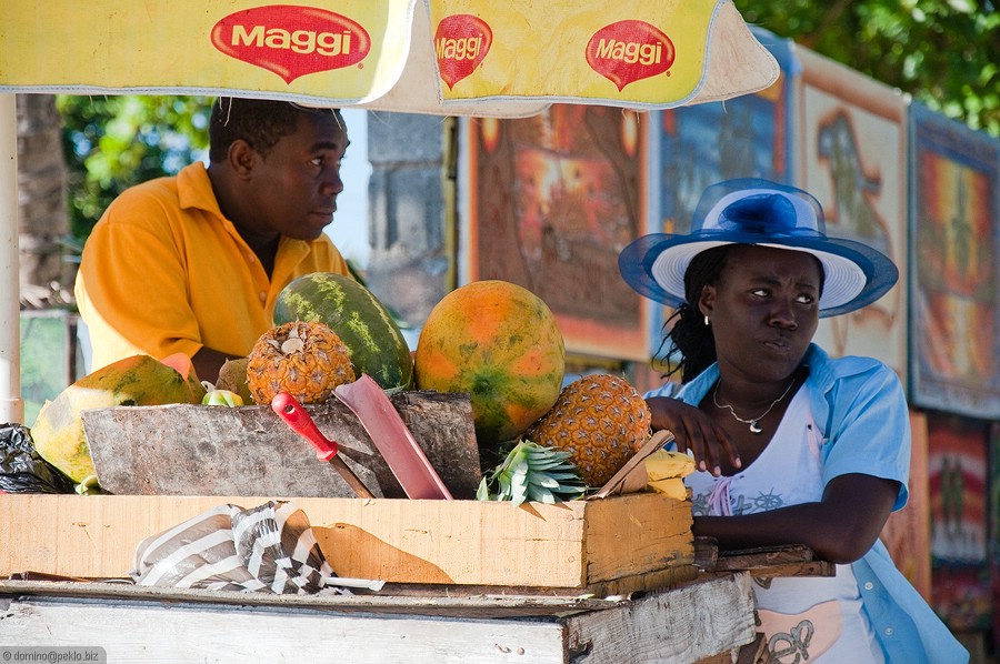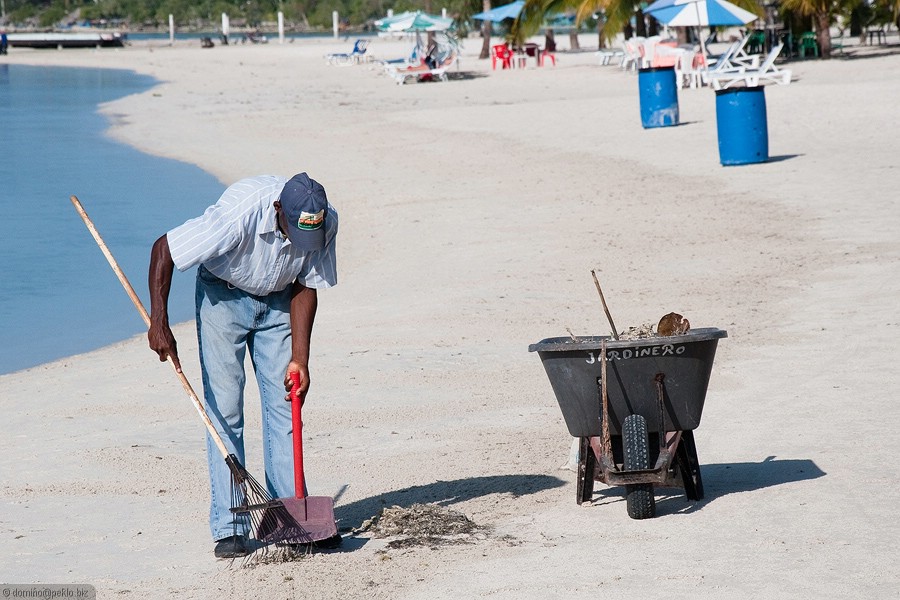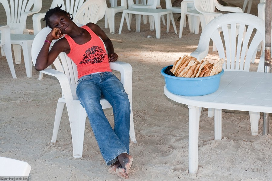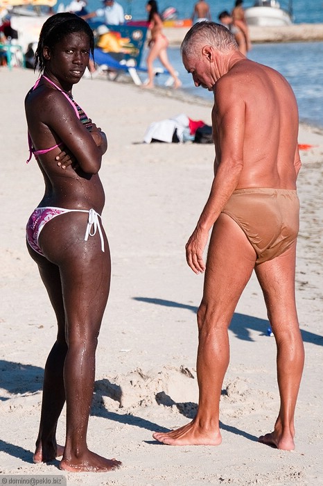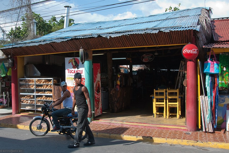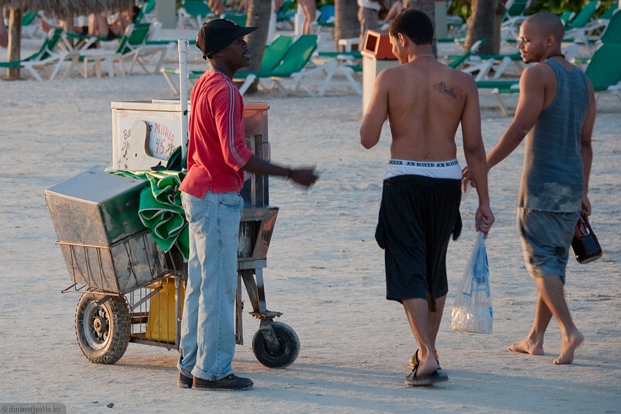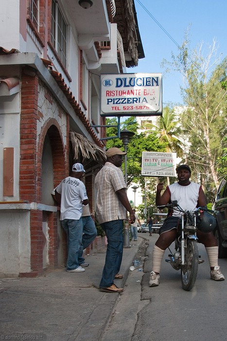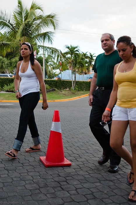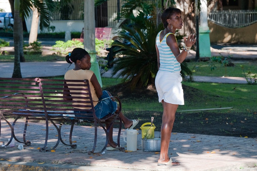 K Boca Chica patří neodmyslitelně i obchod s bílým (bílým...?!) masem, nemalá část "turistů" sem jezdí primárně kvůli tomu. Běžné kombo - šedovlasý běloch s mladou snědou Dominikánkou (případně se o jednu podělí i víc dědoušků). Mírně komické že největší nabídka je v parku přímo pod místním kostelem... Aby jsme byli spravedliví - nejezdí sem jen postarší páni za prostitutkami, ale i postarší paničky za prostituty. |