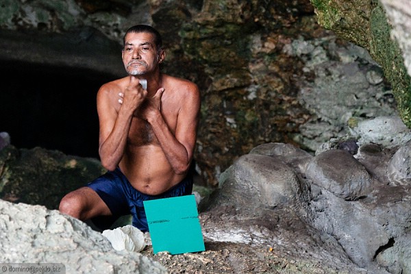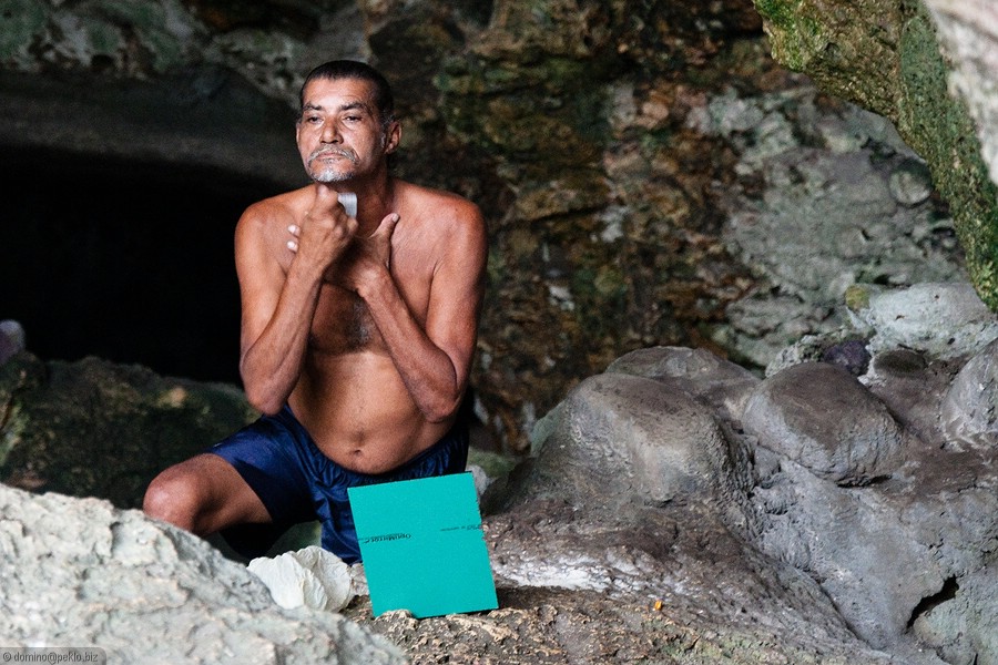 Místní Homo Homeless, bydlící v jedné z jeskyň.
